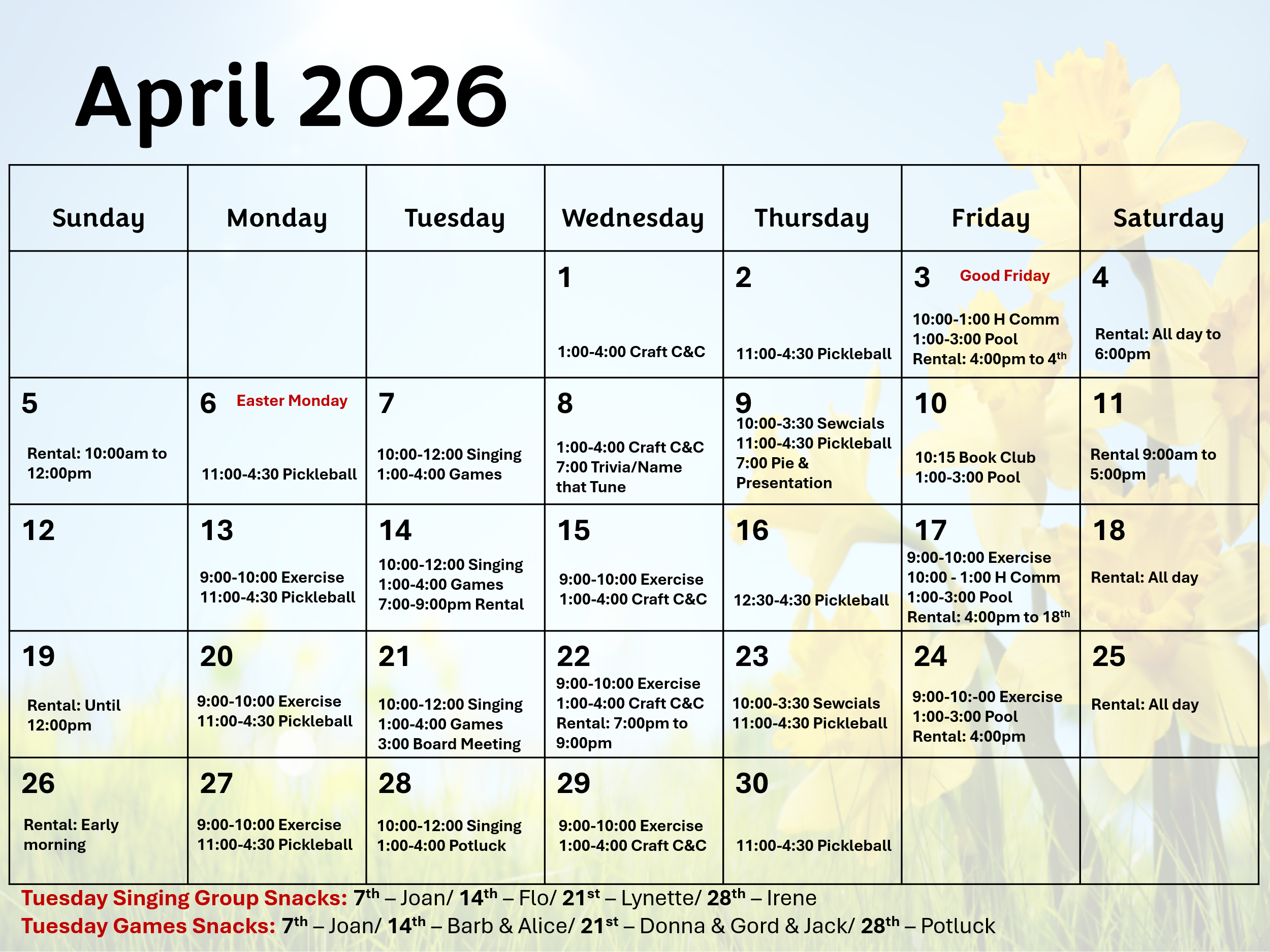 Newsletters April 2026 February 2026 May 2025 April 2025 March 2026 March 2025 February 2025 January 2025 This Month’s Calendar Calendar from previous months April 2026 March 2026 May 2025 February 2026